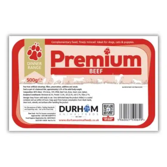 Part of the Premium Dinner range, Beef Dinner is blended with 80% meat, 10% bone and 10% offal. Free from artificial colours, preservatives and flavours.
