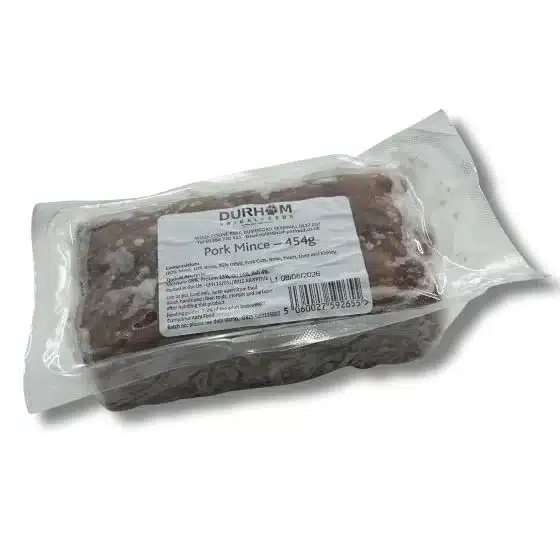 Pork Mince with 80% meat, 10% bone and 10% offal. Free from artificial colours, flavours and preservatives.