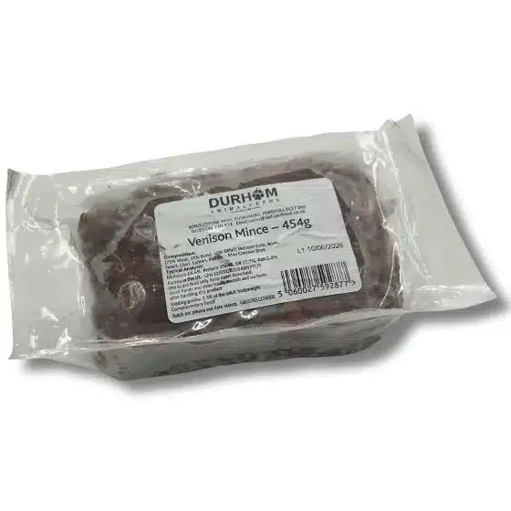 Venison Mince with 75% meat, 15% bone and 10% offal. Free from artificial colours, flavours and preservatives.