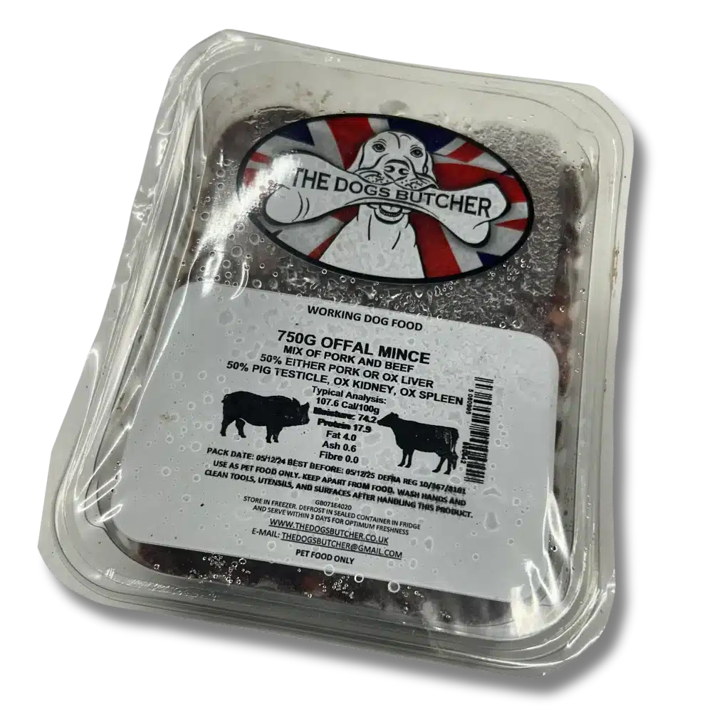 The Dog’s Butcher range of minces have a chunky, moist texture that dogs truly enjoy, and are packaged in convenient to stack and freeze plastic trays.